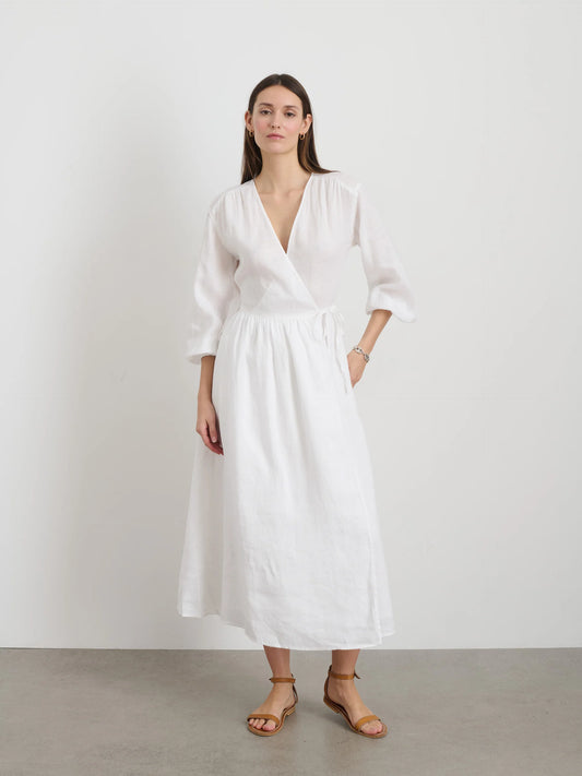 Lauren Wrap Dress In Linen - White