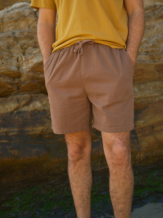 Pull on Button Fly Shorts - Warm Khaki