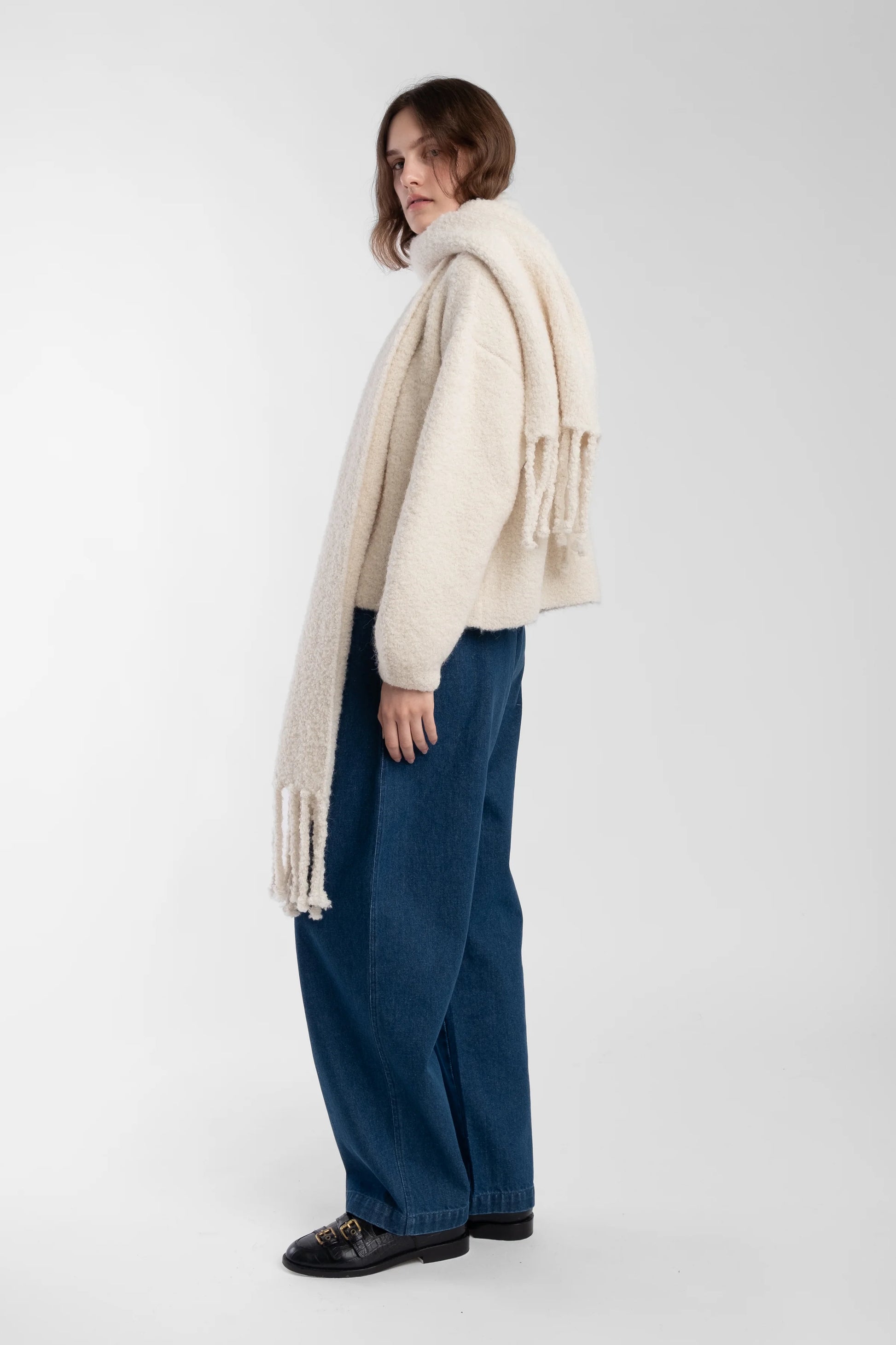 Micaela Greg - Curly Fringe Scarf in Cream.