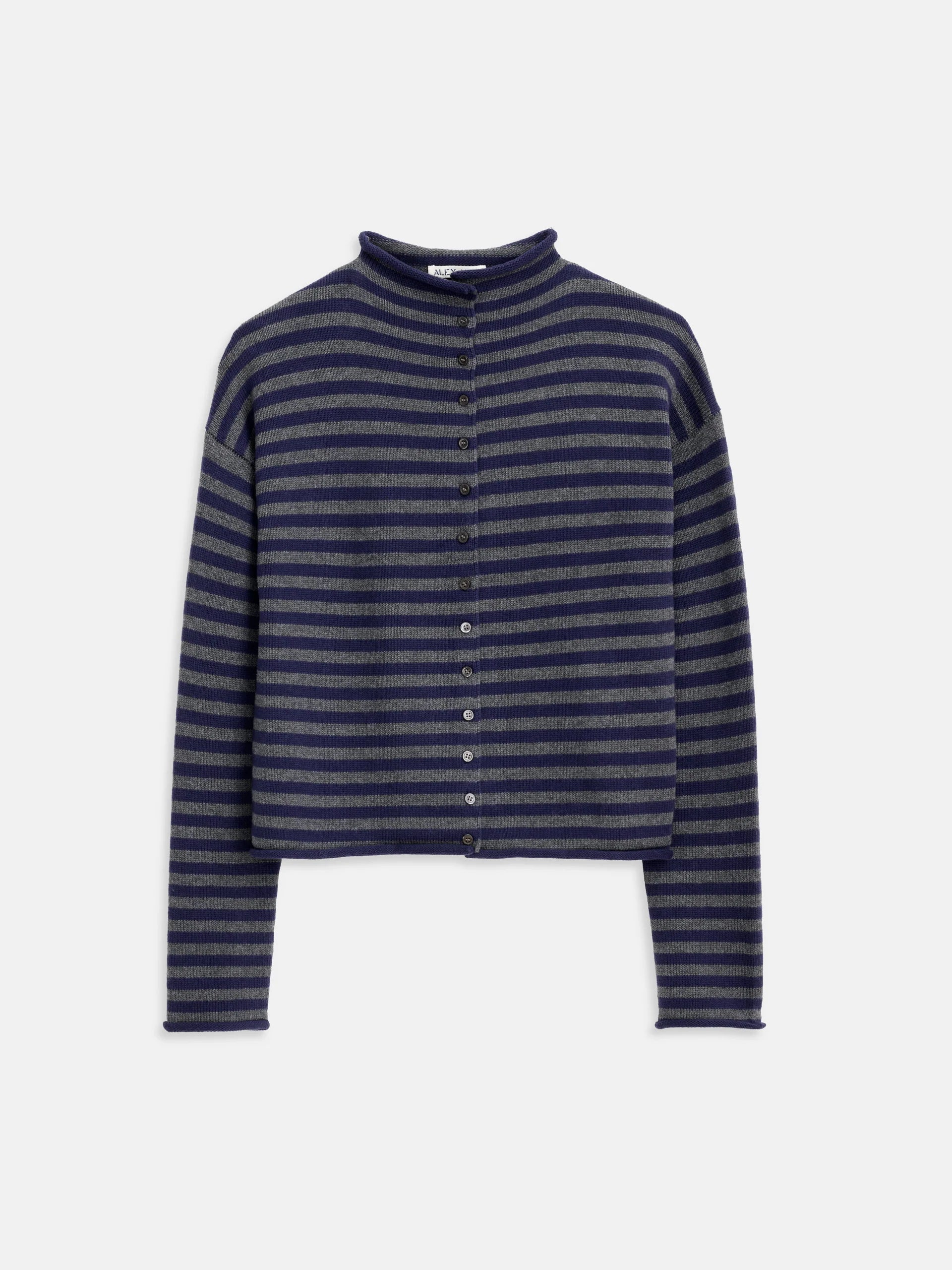 Taylor Cardigan in Cotton Cashmere - Navy/Oxford