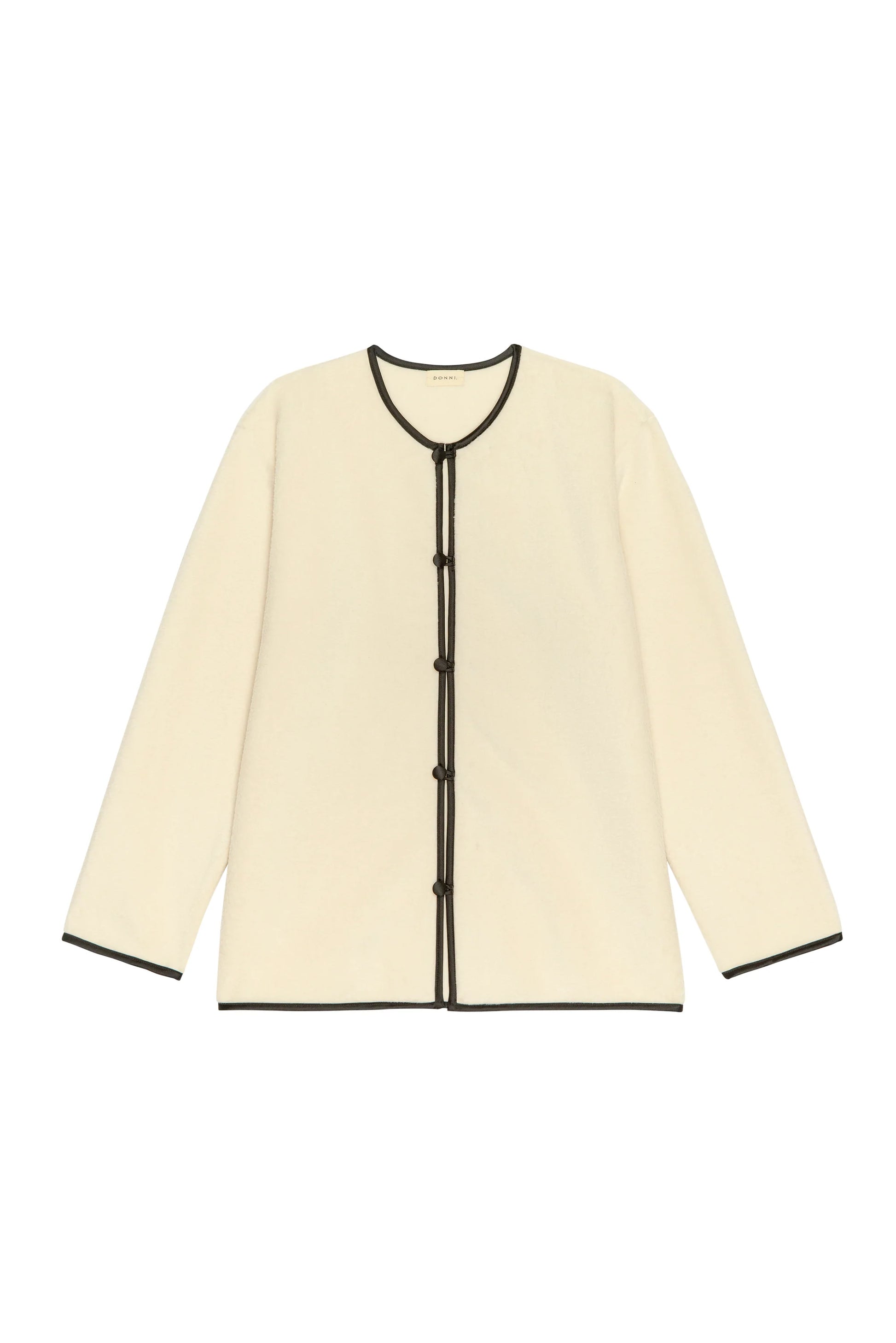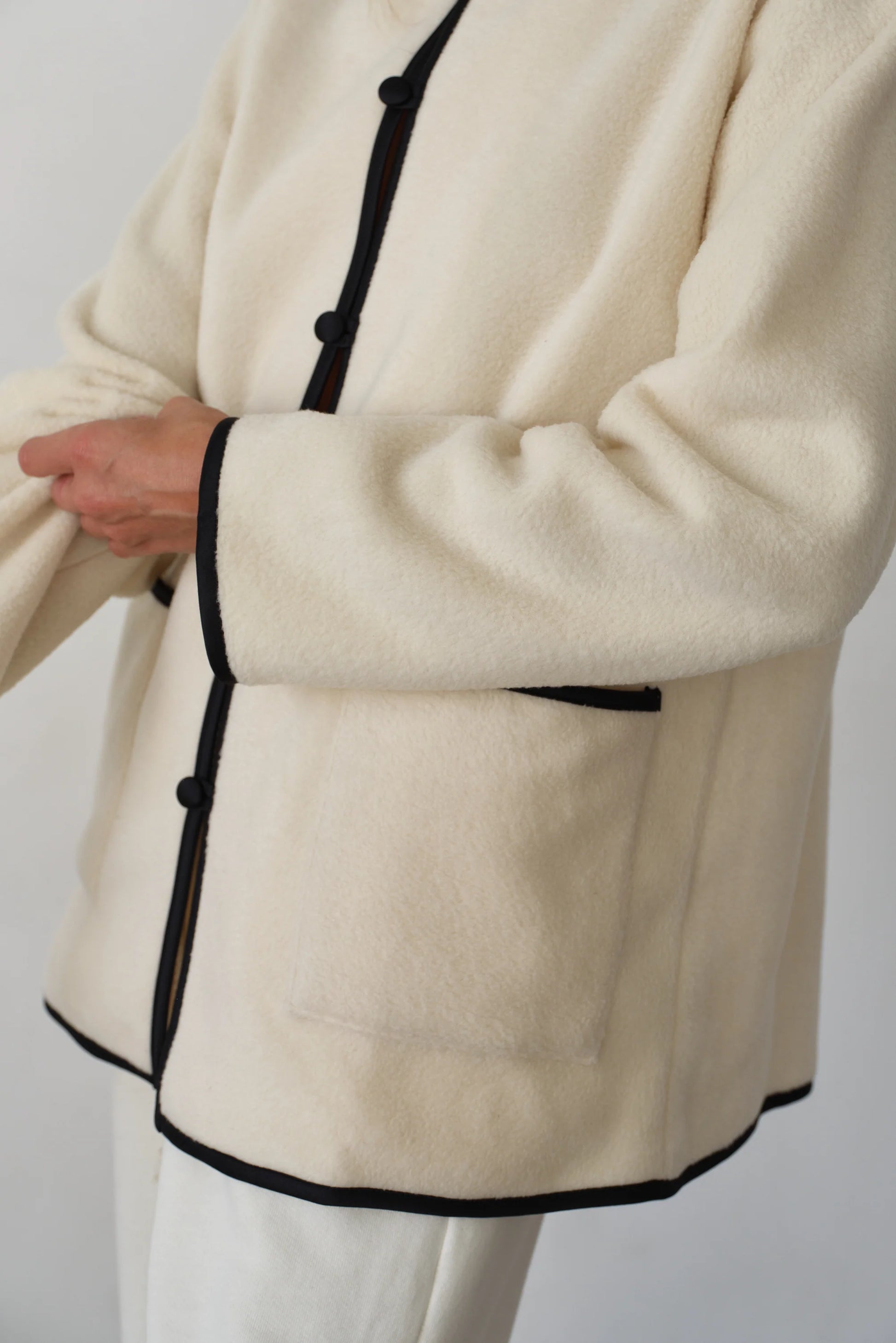 The Polar Fleece Jacket is made from plush fleece and trimmed in our signature silk-wool with matching covered buttons. Finished with a relaxed, boxy silhouette for an effortless blend of comfort and polish.